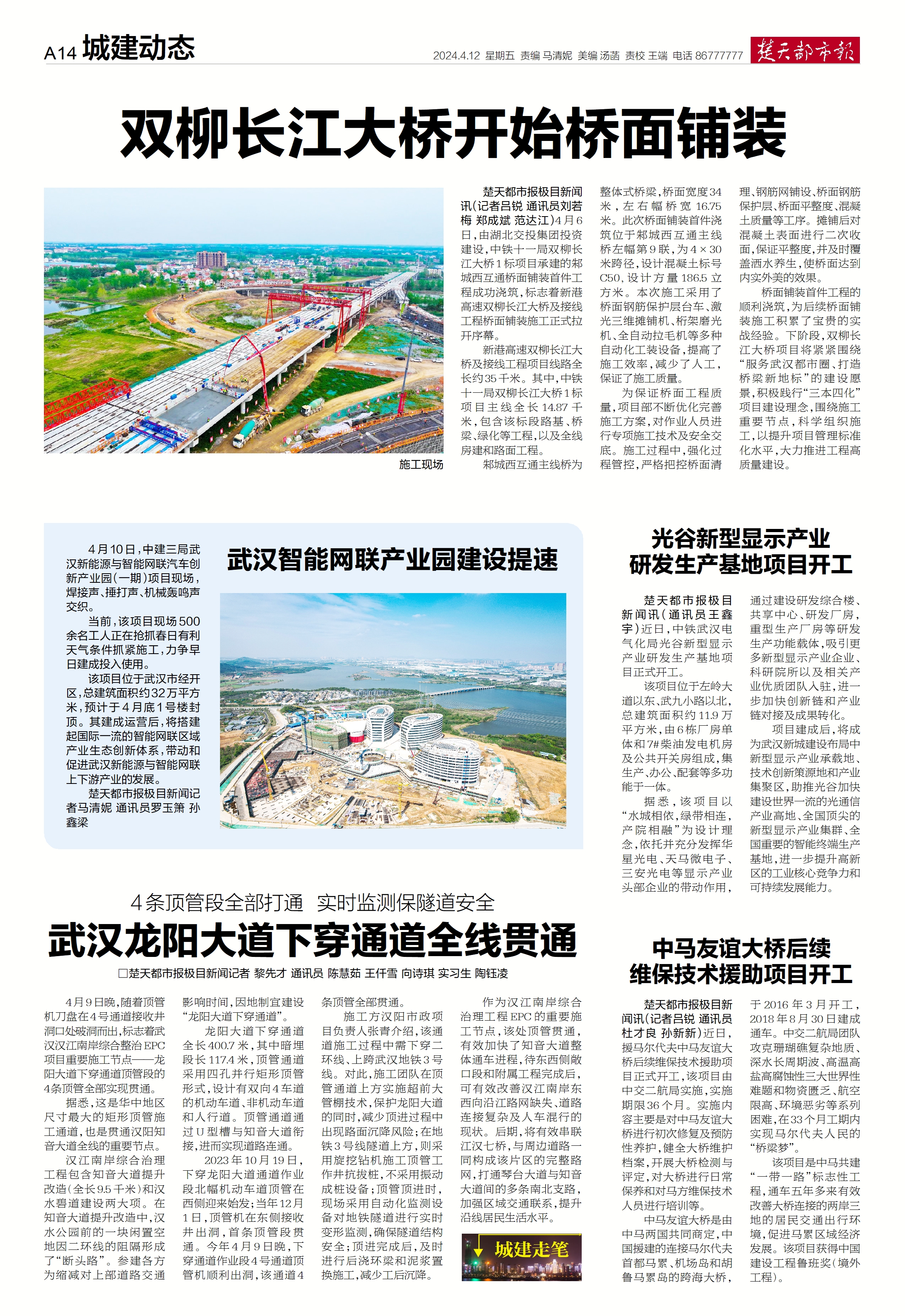 楚天都市報(bào)推出《雙柳長(zhǎng)江大橋開始橋面鋪裝》專版報(bào)道。