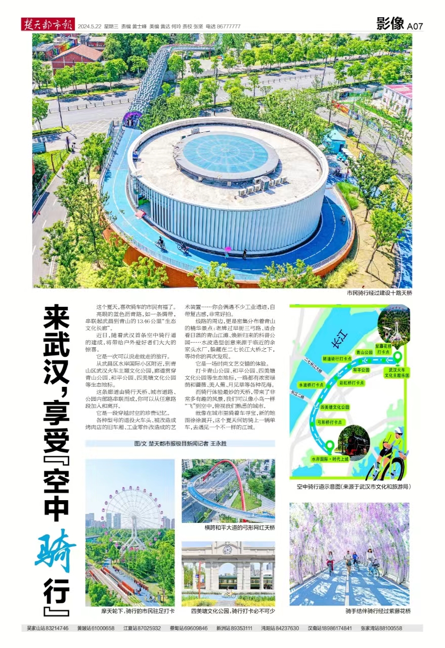 楚天都市報(bào)推出《來武漢,享受“空中騎行”》專版報(bào)道。