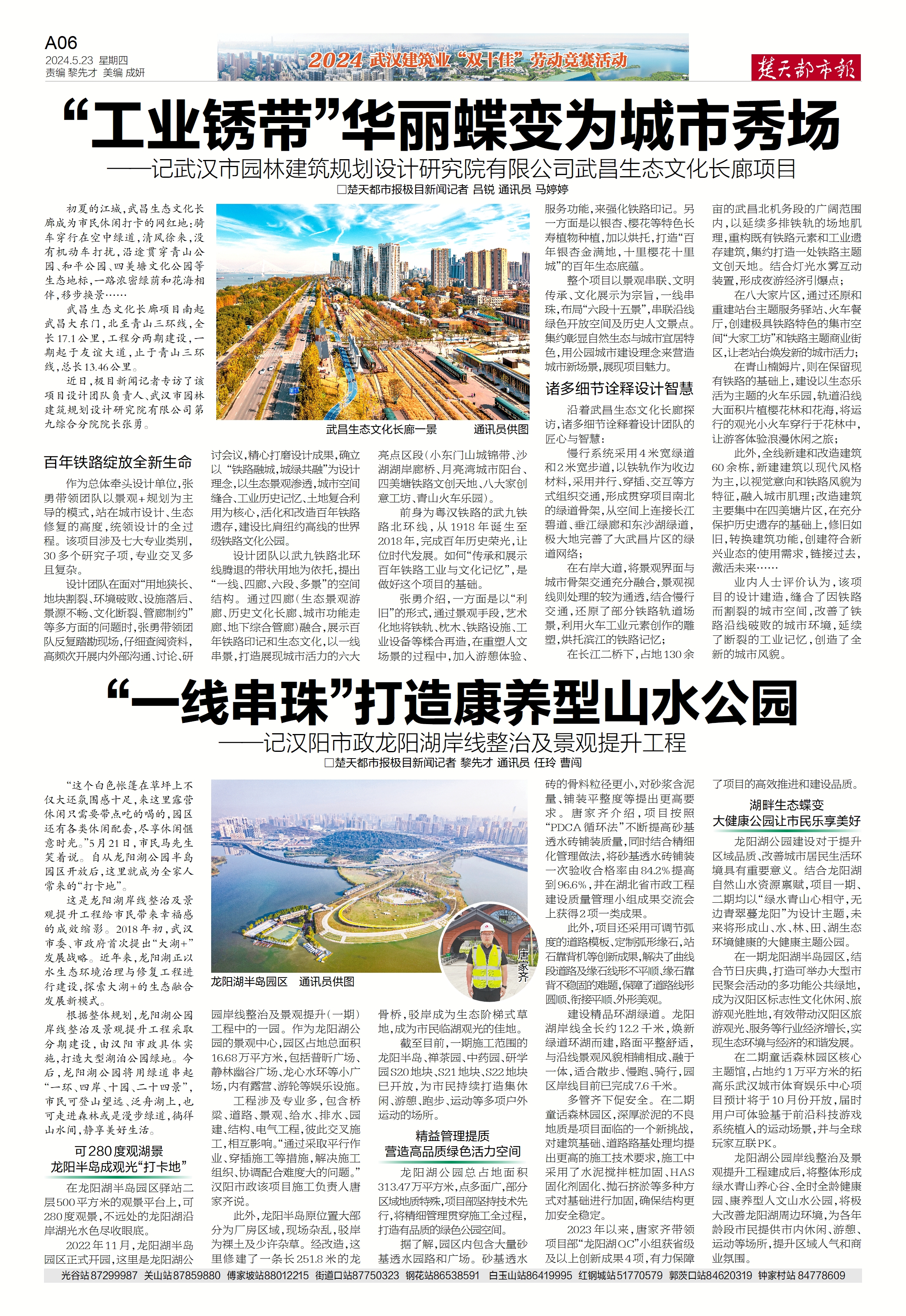楚天都市報推出《“一線串珠”打造康養(yǎng)型山水公園——記漢陽市政龍陽湖岸線整治及景觀提升工程》專版報道。